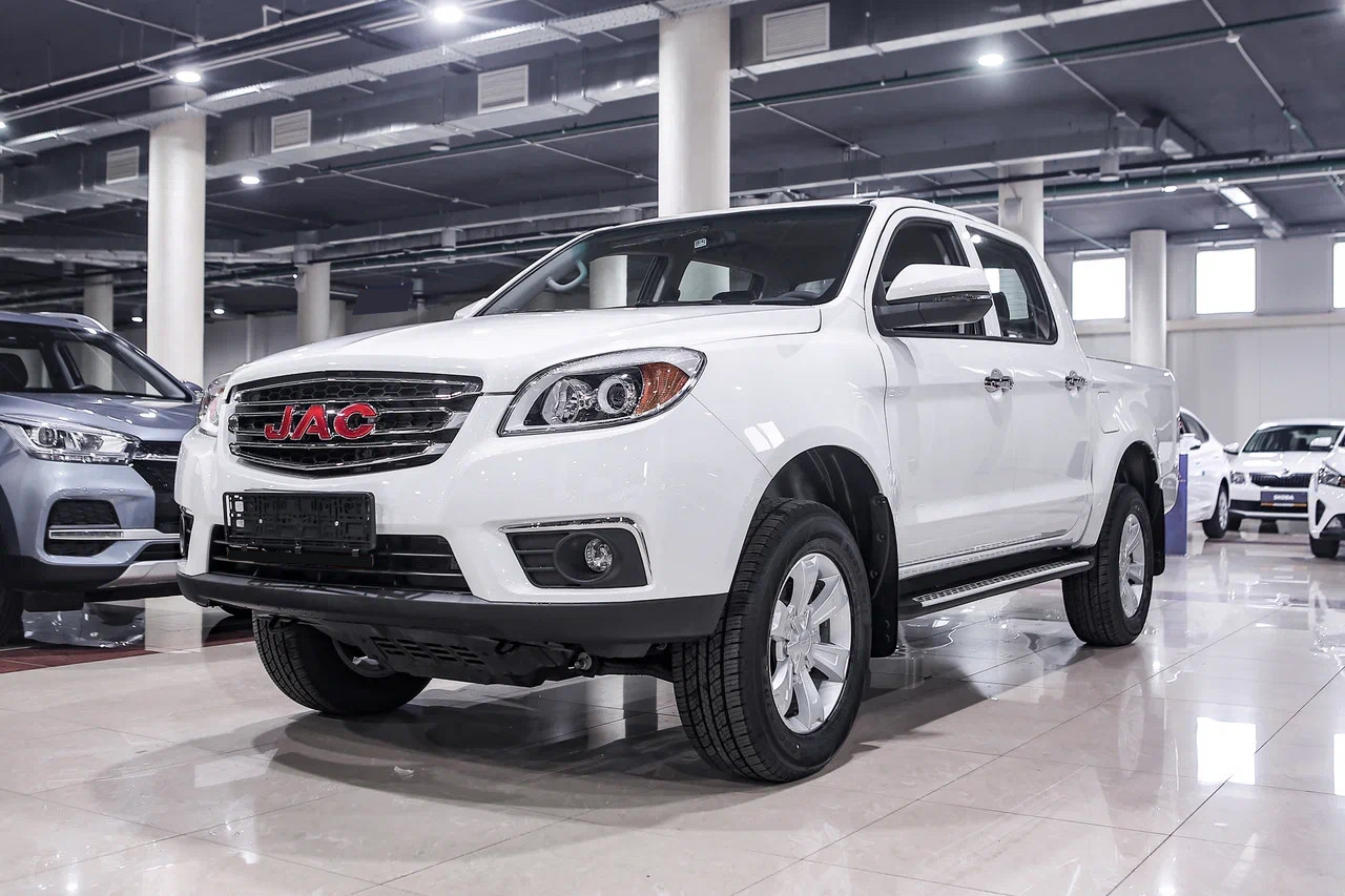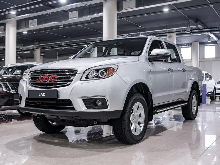 Внешность китайского пикапа JAC T6 в действительности внушительна. Автомобиль выглядит мощно и немного грозно. Все из-за размеров пикапа. Достаточно только взглянуть на 17-дюймовые диски и высокий клиренс. По мощному внешнему виду сразу становится понятно, что автомобиль проедет не только по городским дорогам, но и в труднопроходимых местах.